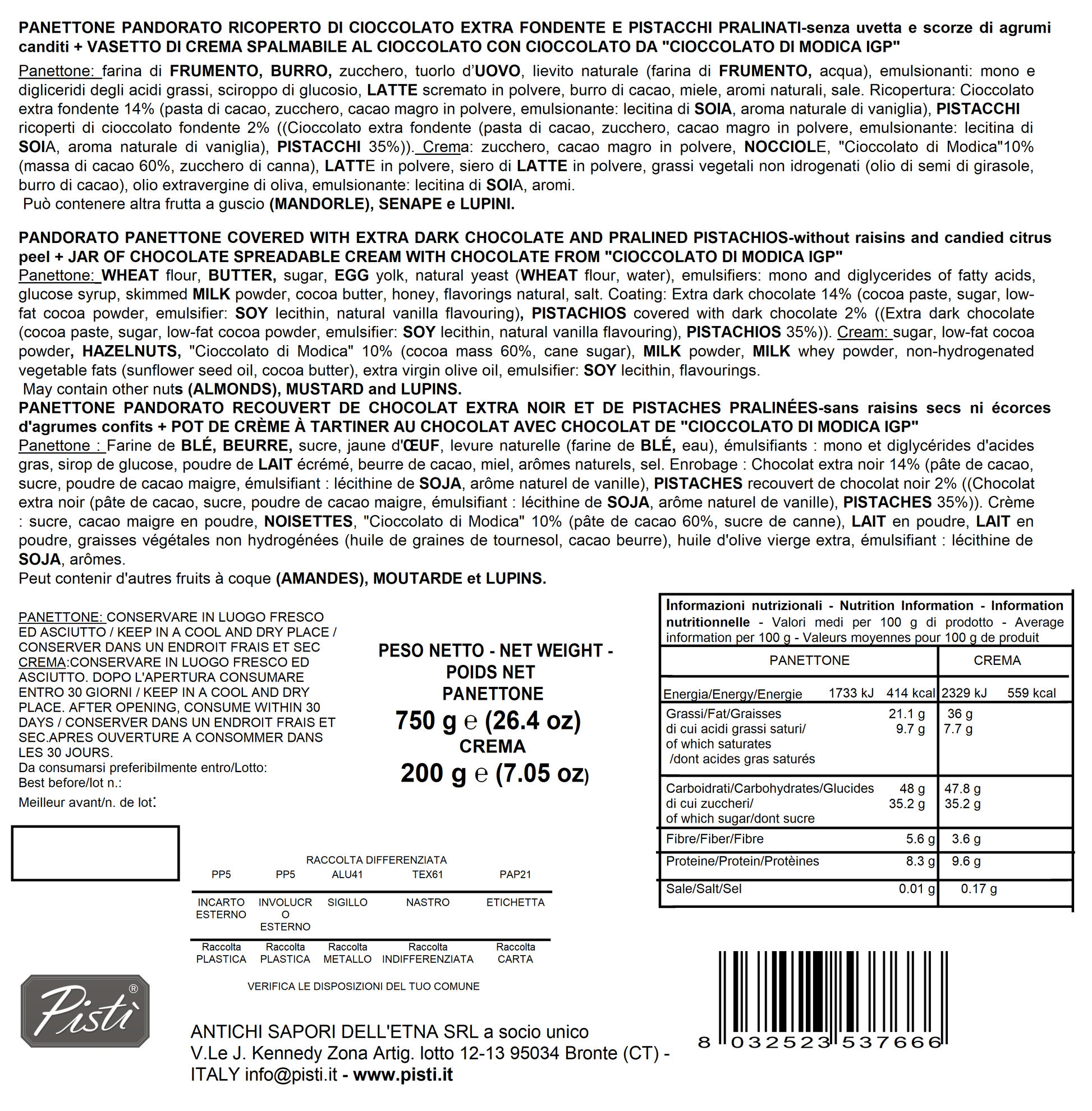 Panettone Pandorato con Pistacchio e Cioccolato Fondente 70% + Vasetto Crema Cioccolato di Modica IGP