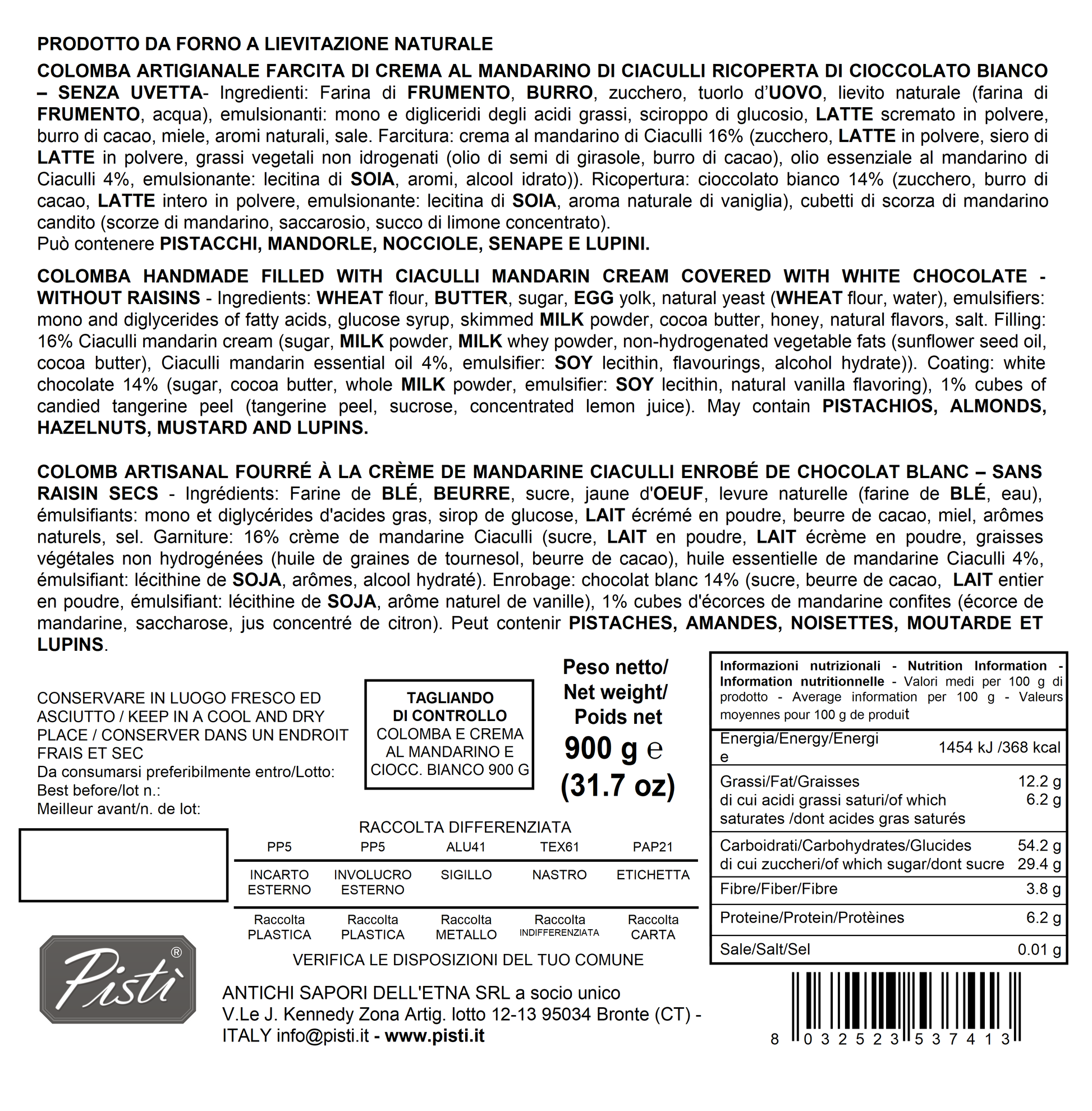 Può contenere PISTACCHI, MANDORLE, NOCCIOLE, SENAPE E LUPINI.